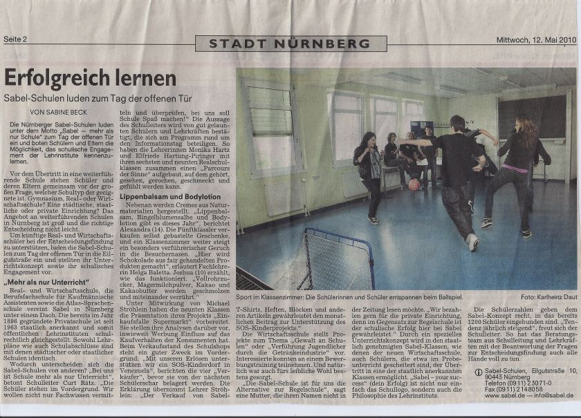 Kleine Zwischeninfo: Am Mittwoch wurde in der Tageszeitung „Nürnberger Nachrichten“ ein Bericht zu unserem Tag der offenen Tür veröffentlicht. Der Zeitungsausschnitt wird hier demnächst hochgeladen, jetzt schon mal der Link zum Online-Bericht: Link zum Bericht