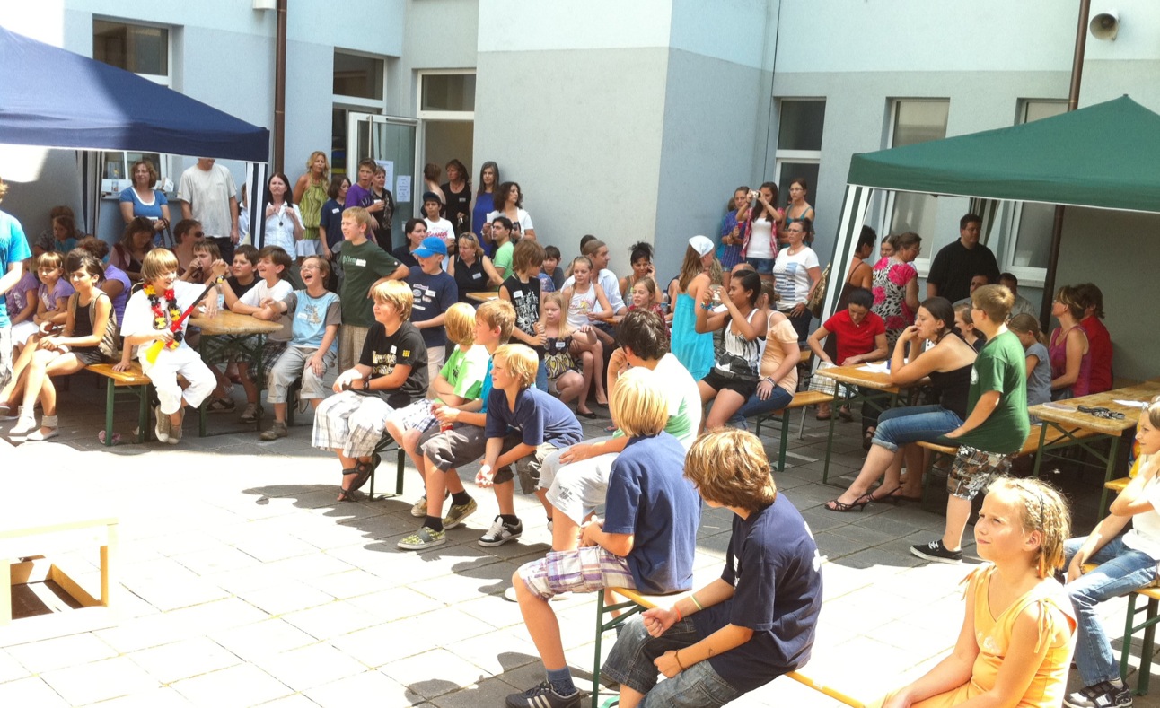Die Kinder konnten die Schule unter die Lupe nehmen, gegen die Hitze gab es viel Obst und auch leckerer Kuchen wartete auch Käufer. Einige Schüler stellten auch Marmelade her, die leckeren Frucht-Kombinationen kamen sehr gut an, gegen 15 Uhr war der Verkaufsstand nahezu leergekauft. Insgesamt verbrachten wir einen netten Nachmittag mit neuen Schülern in Pausenhof unserer Schule. Vielen Dank an alle Schüler, die heute bei der Hitze Jobs auf und neben der Bühne übernommen haben. Habt ihr toll gemacht! Schönes Wochenende!