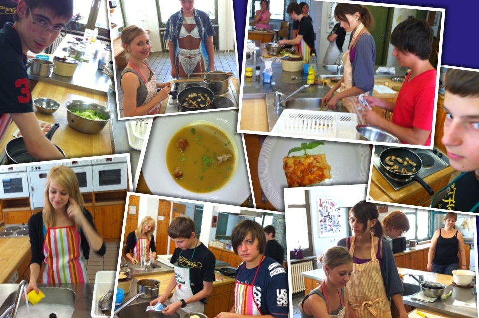 Schwerstarbeit bei großer Hitze lieferten heute die Mädels und Jungs aus den Klassen R7a und R7b ab. Das letzte Kochduell des Schuljahres stand auf dem Programm. Diesmal bestand die Jury gleich aus drei Leuten, neben den beiden Klassenleitern Frau Heindel und Herrn Ströhlein war auch noch „neutral“ bei Daly mit dabei.