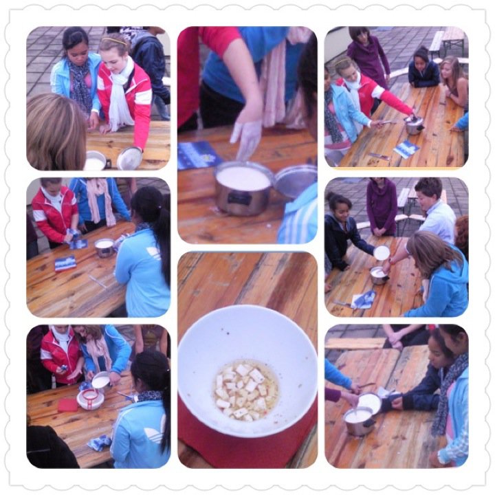 Kurz vor dem Abgießen der Molke bekam jeder von uns einen Löffel und wir