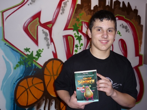 na findet ihr auch dass es in den Ferien oder am Wochenende mal so richtig langweilig sein kann? Dann hätte ich genau dass passende für euch: Ein Buch! Ich weiß schon dass wenn man einen Schüler frägt nach „Bücher“ bekommt man Worte wie: Langweilig, zu anstrengend oder Playstation ist viel besser, zu hören. ABER die Bücher die ich euch, übrigens jede Woche, vorstelle passen auf keinen Fall zu euren Vorurteilen….so heute könnt Ihr ein Interview mit Christopher Gütermann aus der R9a und das Buch : “Dämliche Dämonen von Royce Buckingham“ lesen, Viel Spaß.