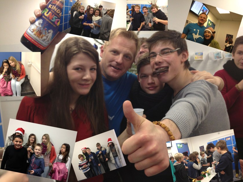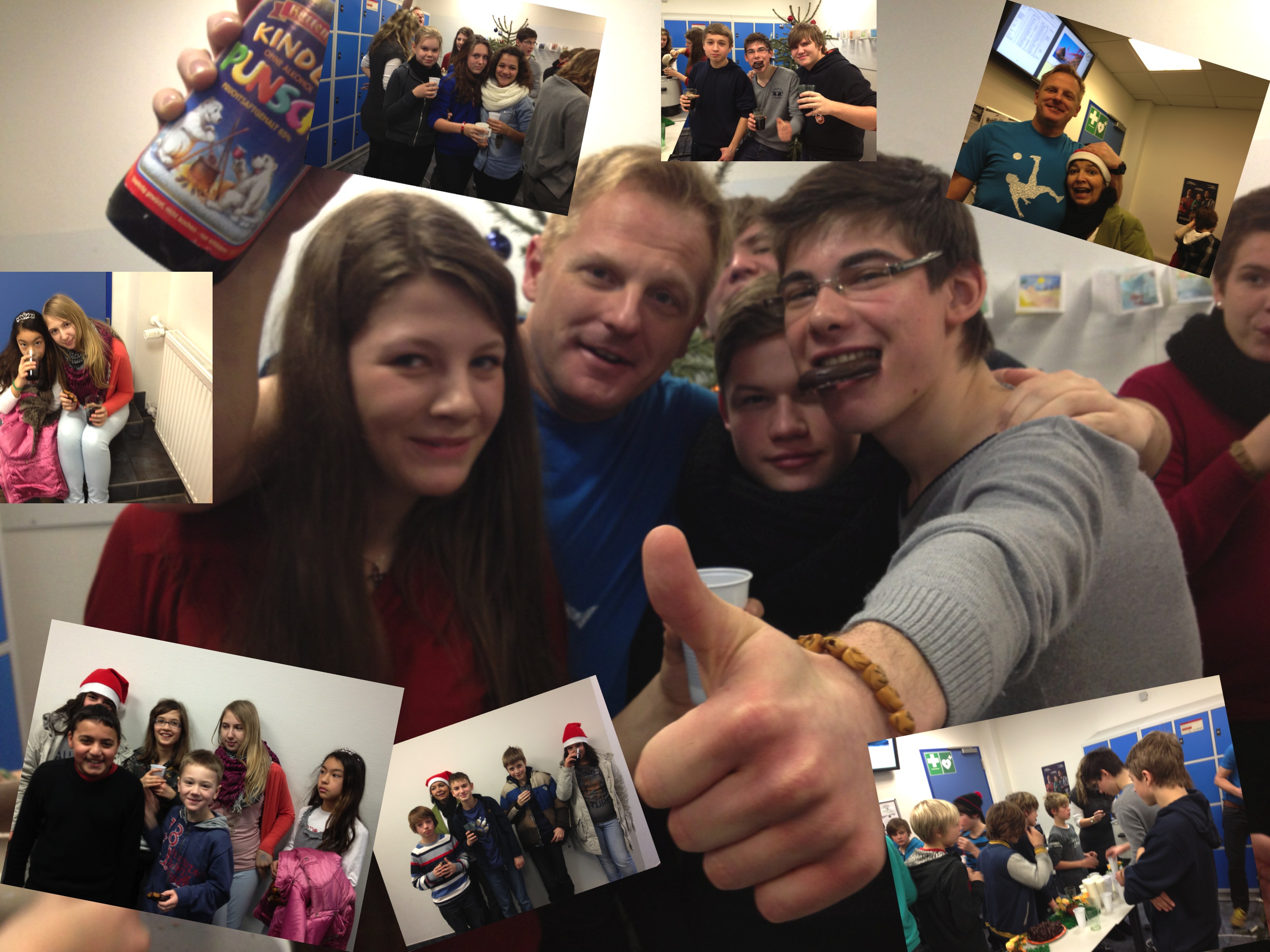 Viel Spass hatten wir in der letzten Pause des alten Jahres. Wie im Vorjahr hat die Mediengruppe für jede Menge Kinderpunsch und Lebkuchen gesorgt. Als kurz vor dem Pausengong eine entsprechende Durchsage zu hören war, gab es besonders für die fünften Klassen kein Halten mehr. Vor unserem Weihnachtsbaum war schlagartig jede Menge los.