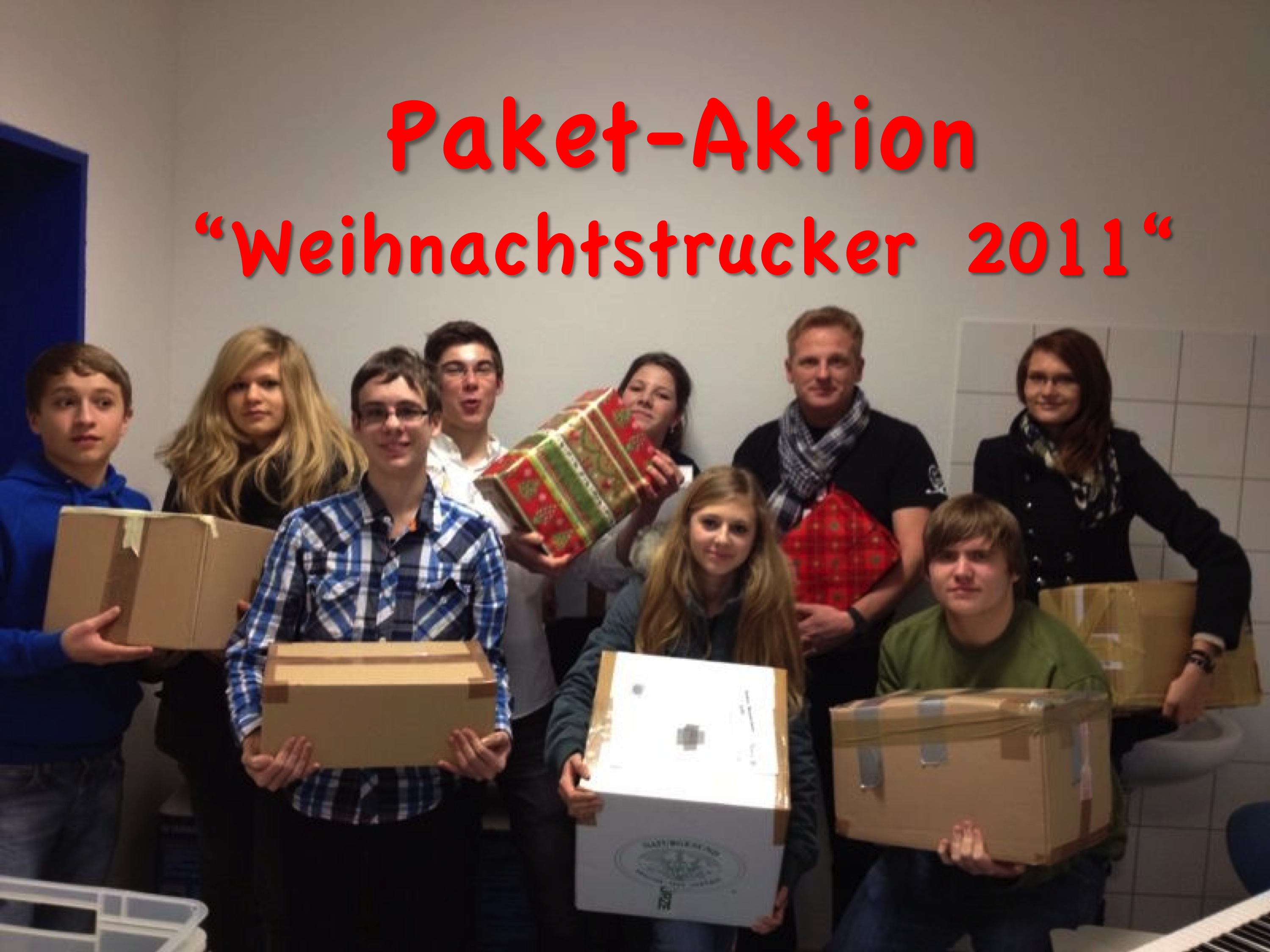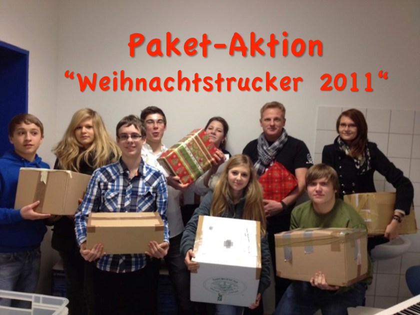 auch dieses Jahr haben wir gerne bei der Paket-Aktion „Weihnachtstrucker 2011“ mitgemacht, die aus den Vorjahren von Antenne Bayern bekannt ist. Toni und Janika haben in unseren 12 Klassen etwa 300 Infoblätter für die Eltern verteilt. Wer die Packliste durchgelesen hatte, hat sicher gemerkt, dass schon ein paar Euro genügt hätten, um einer armen Familie, z.B. in Rumänien, eine kleine Freude zu bereiten.