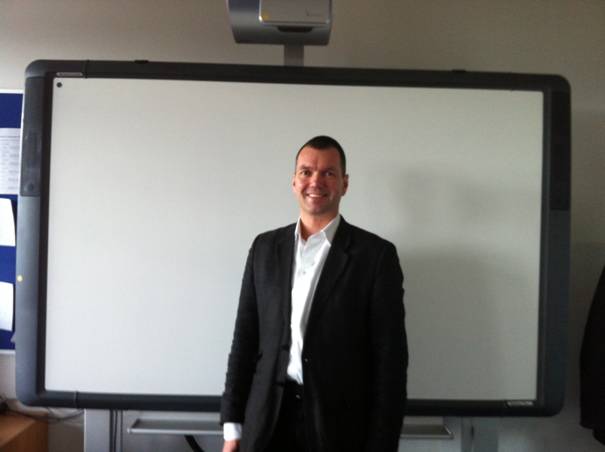 Für die Realschule entsteht ein neues Gebäude mit neuen Klassenzimmern und neuen Tafeln. Dann wird es keine Kreide mehr geben sondern nur noch die digitale Tafel. Und da im Moment nur ein Lehrer dieses Technikwunder benutzen kann, Herr Ehlers, (ein Lehrer aus der Wirtschaftsschule) habe ich ihn mal in seinen Büro besucht und einiges zu diesen neuen Tafel gefragt.