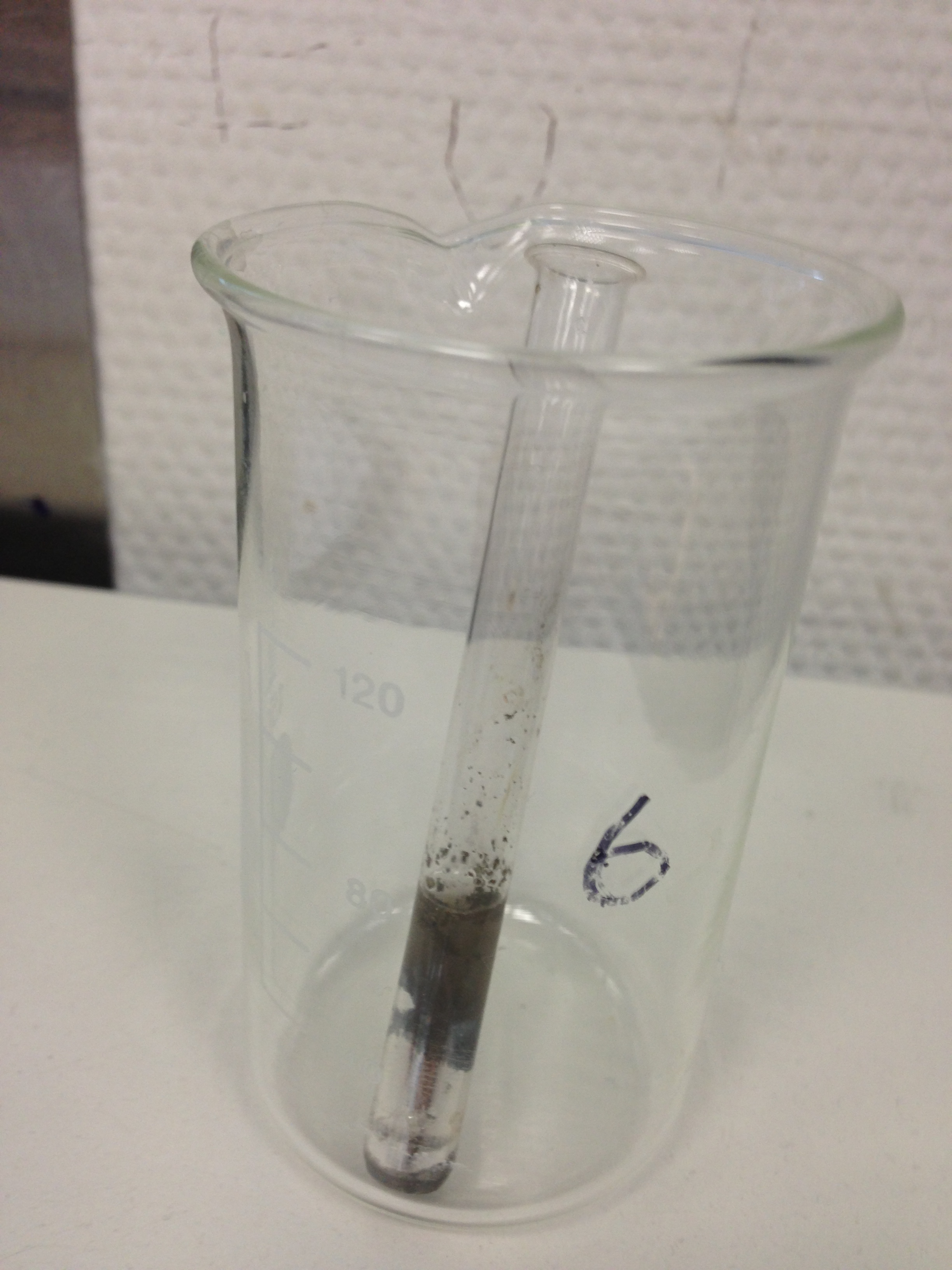 …. und BUMM-BENG.. (nein, leider ohne Explosion) muss man nur noch ein wenig Geduld haben und dann sieht man auch schon das Ergebnis: Am Reagenzglas scheidet sich Silber ab. Wenn wir nächste Woche noch lernen, wie man Gold macht, hänge ich meinen Job bei Sabelino aber an den Nagel 🙂