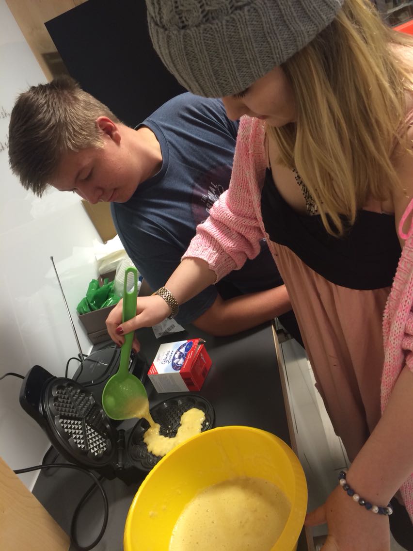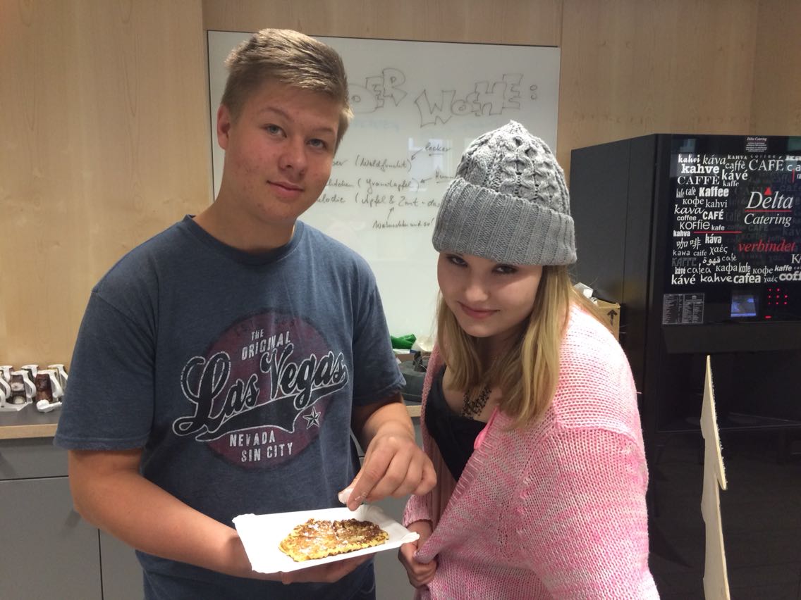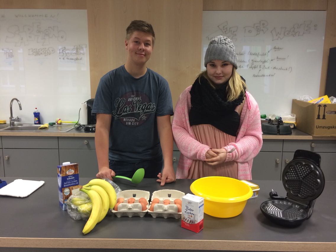 photoHallo, wir sind Patrick und Celina aus der R9b. Wir zeigen euch heute das schnellste Waffelrezept aller Zeiten. Dazu braucht ihr Bananen und Eier. WAS, mehr nicht? Ja, richtig, natürlich noch ein Waffeleisen, aber dann gehts auch schon los!