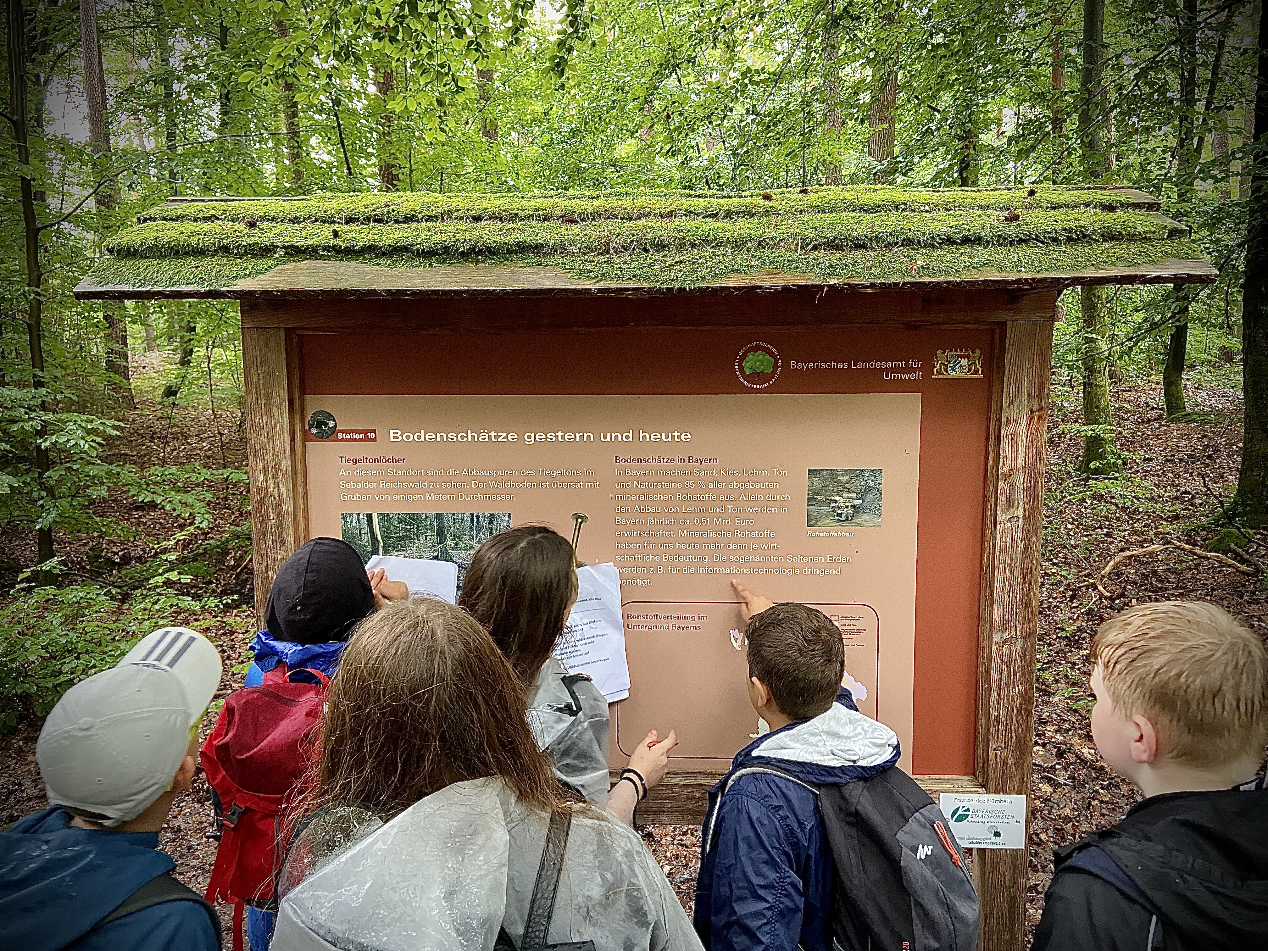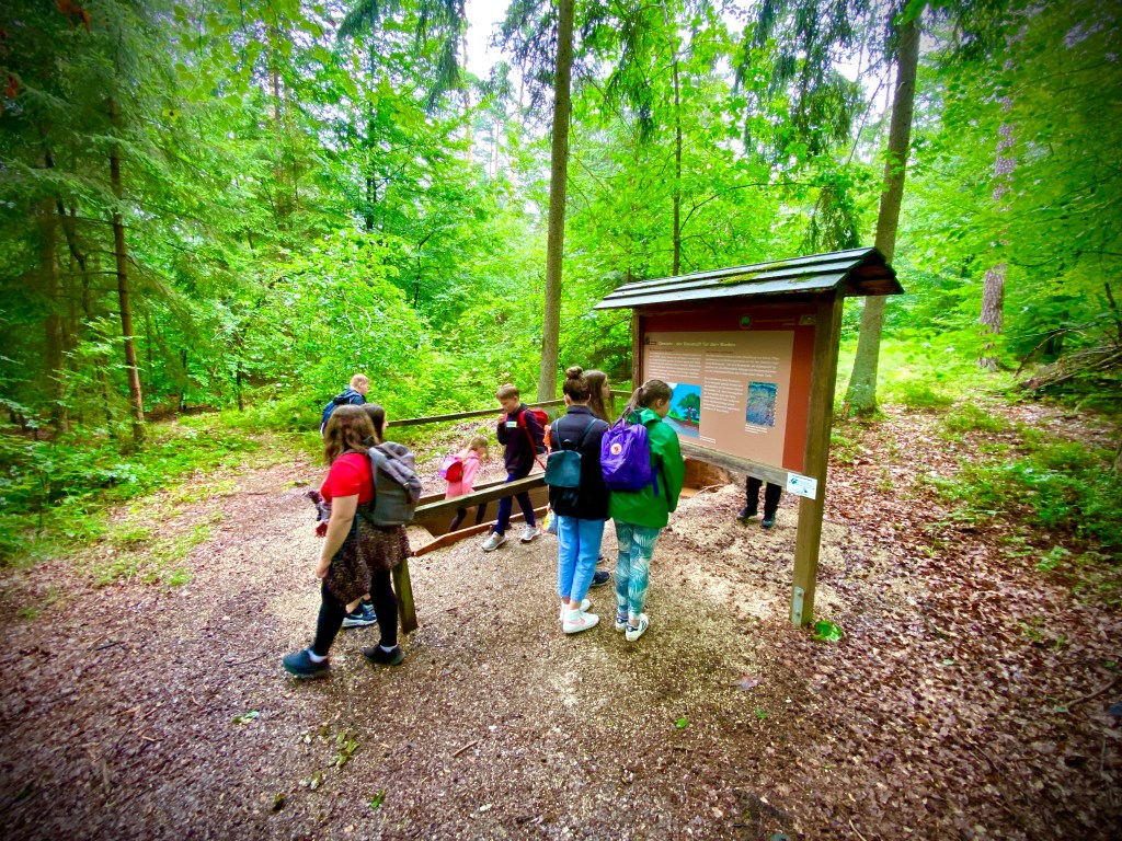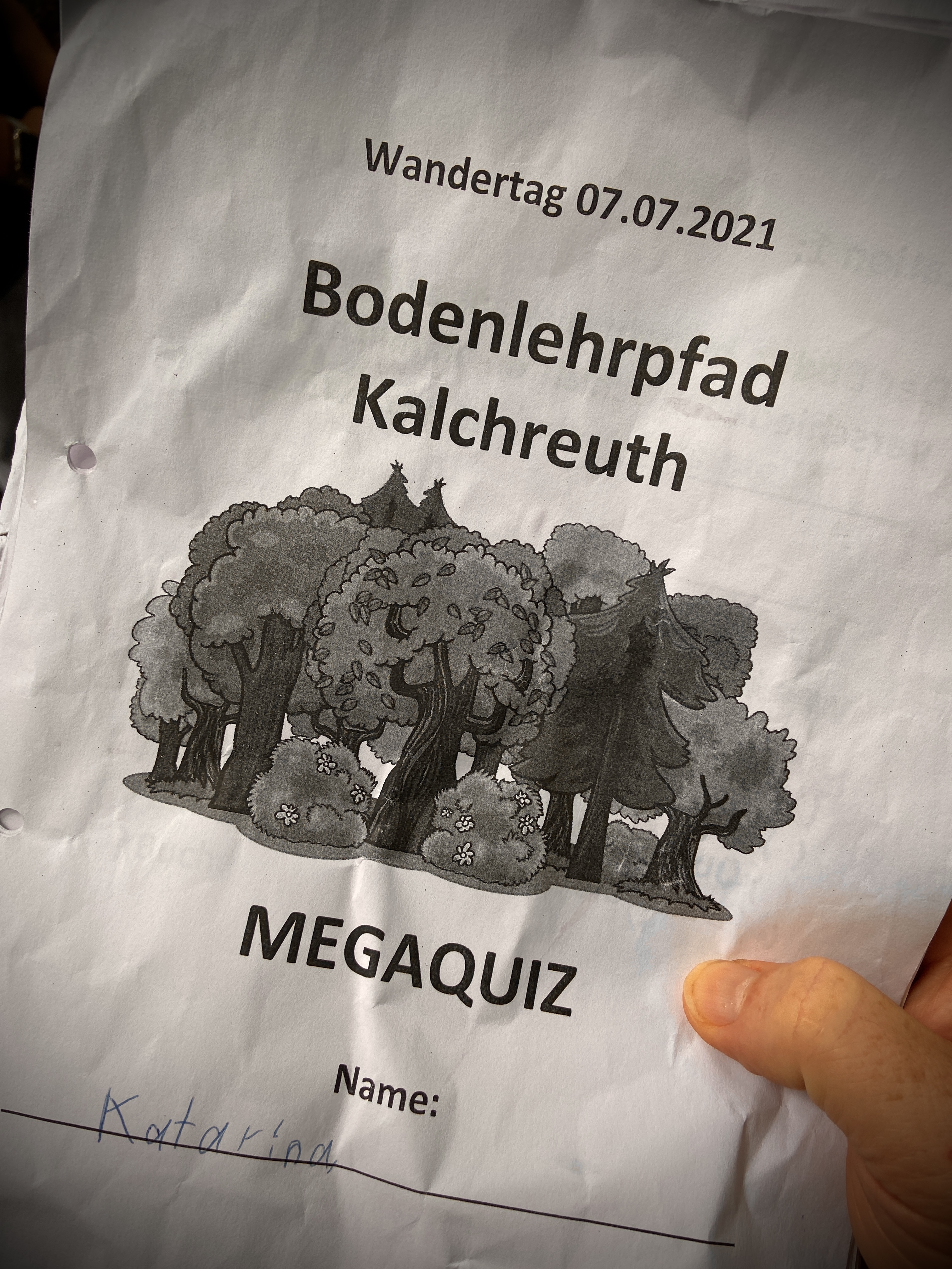 Natürlich hätte es keinen Sinn gemacht, einfach die 10 Stationen abzuwandern, mal kurz einen Blick auf die Infotafeln zu werfen und dann wieder den Heimweg anzutreten. Daher wartete als kleine Überraschung noch ein Quiz auf die Klassen. 10 Fragen zu den Stationen und 10 Fragen rund um das Thema Wald sollten beantwortet werden.
