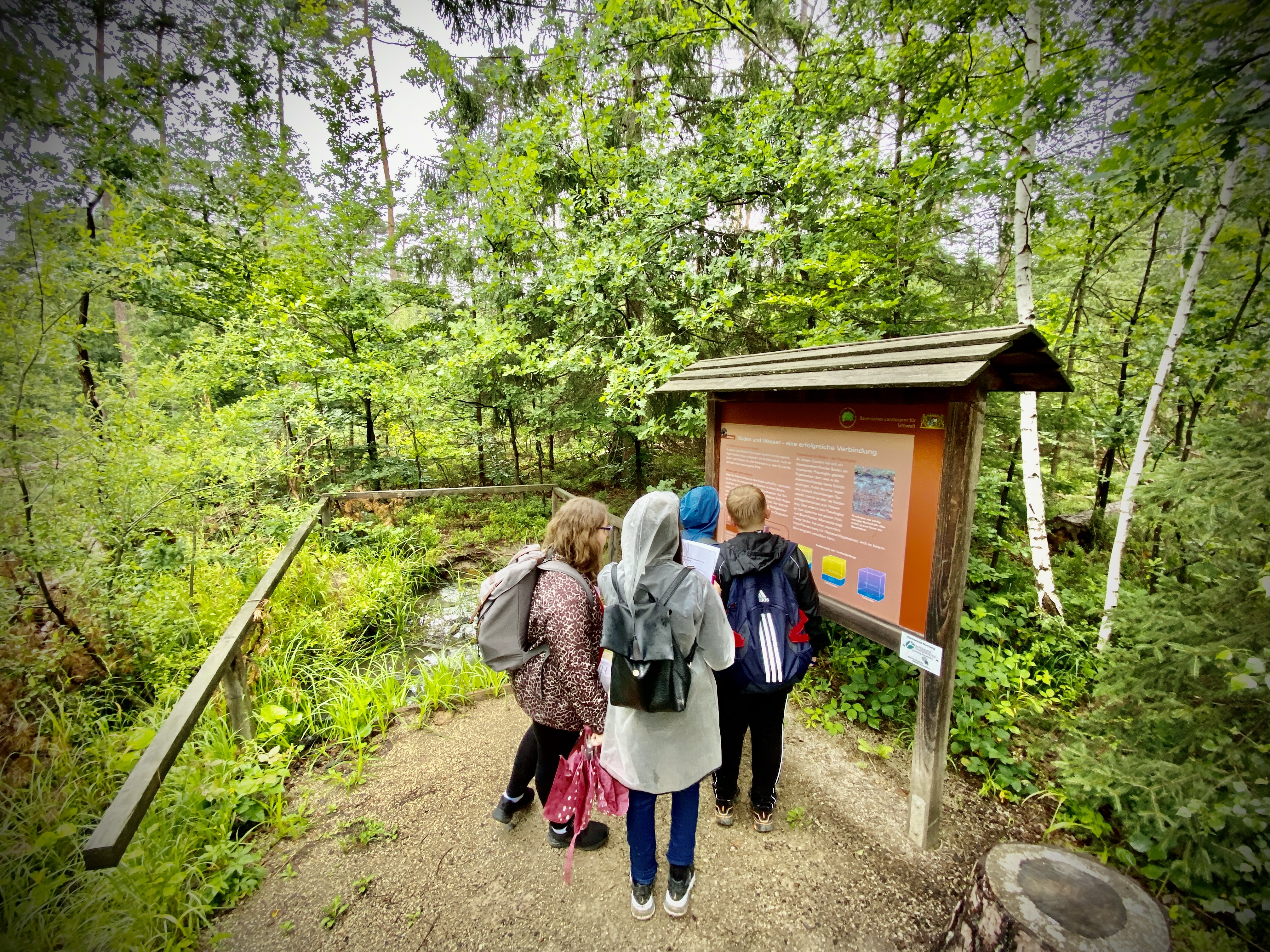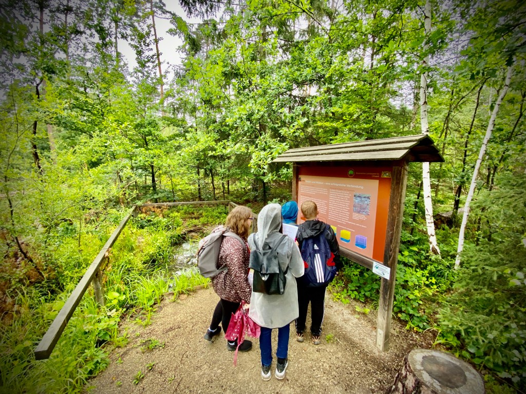 Statt nur das nächstgelegene Kino oder den Stadtparkt anzusteuern, machte sich die R5b tatsächlich auf den Weg in den Wald – Ziel war der Natur- und Bodenlehrpfad bei Kalchreuth. Vom Bahnhof Heroldsberg aus ging es über einen Waldweg Richtung Start.